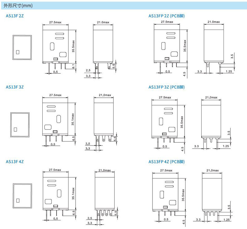 觸點負載(阻性):2Z,3Z: 5A 250VAC/30VDC,4Z:3A 250VAC/30VDC
